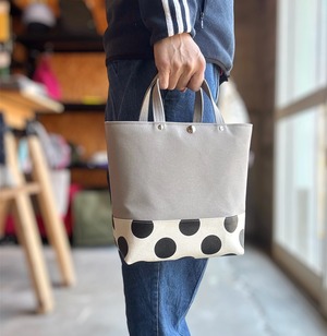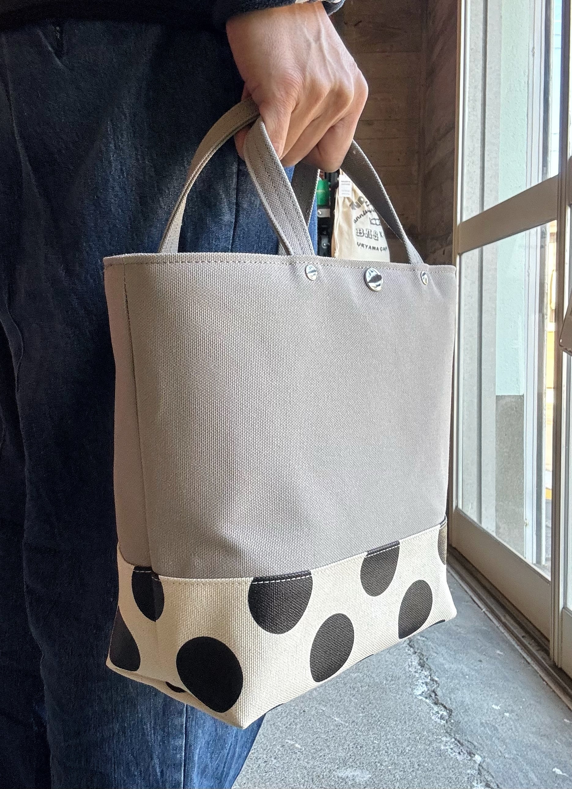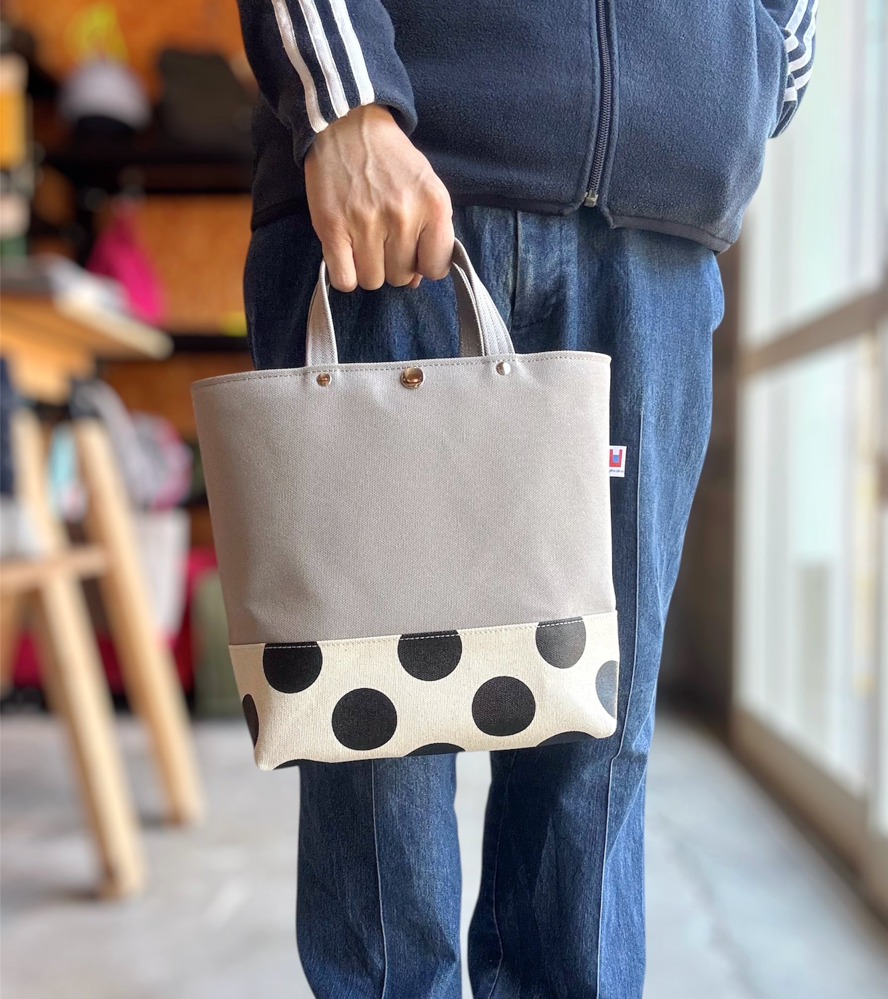 効率良く帆布を裁断していくため、ドット位置が写真とは異なる場合がございます。効率良く裁断するためでもありますが、鞄の角にドットがこないようにするためでもありますのでこの点ご理解のほどよろしくお願い致します。